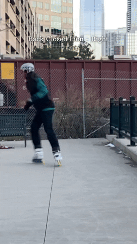 The Back Closed Lion is a one-footed move that starts on a back inside edge and finishes on a front outside edge. It is recommended that you are comfortable rolling in both of those positions before you try this move.